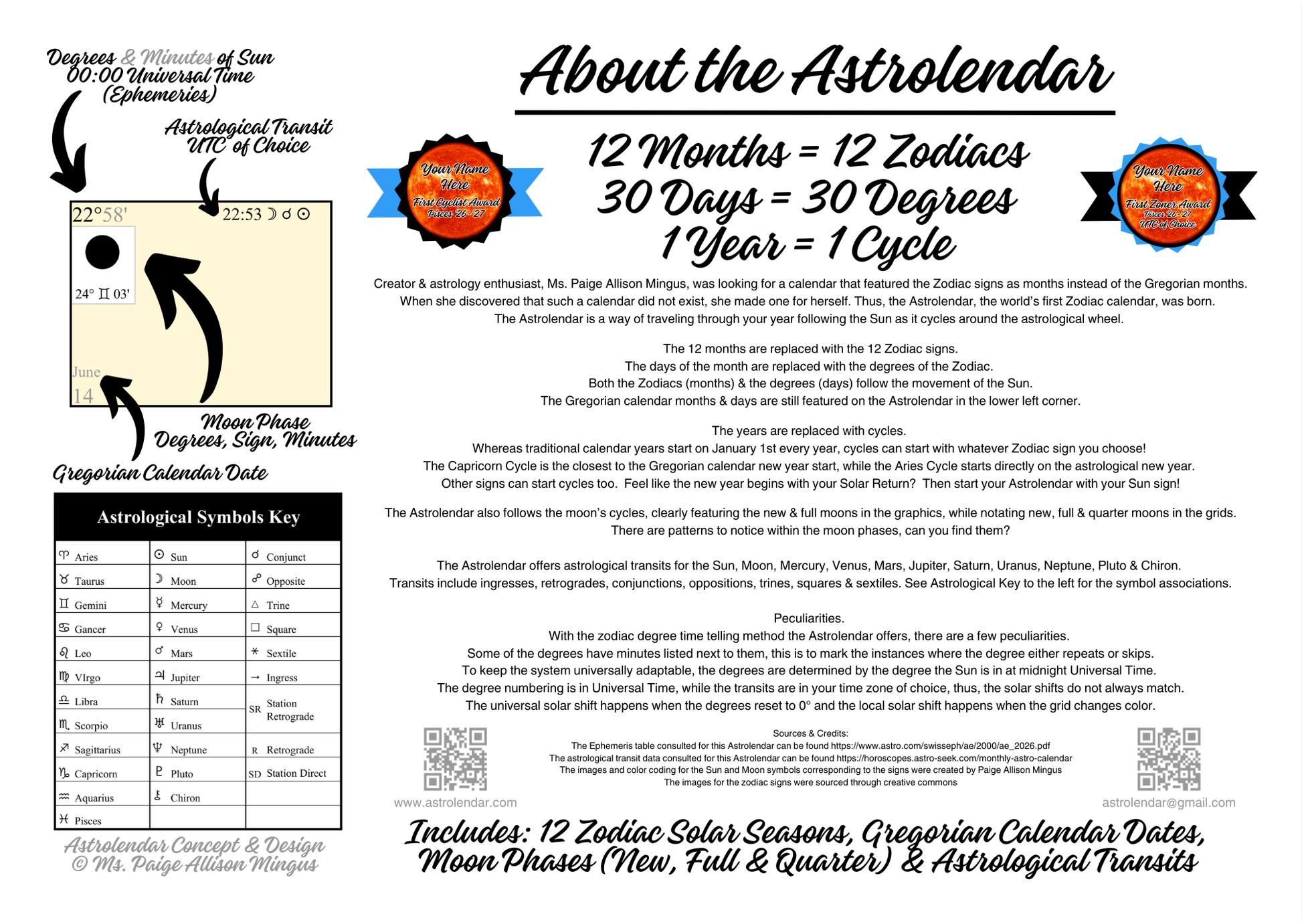 🖊️ Signed Copy: Your copy of the Astrolendar will be signed by the creator, Ms. Paige Allison Mingus
